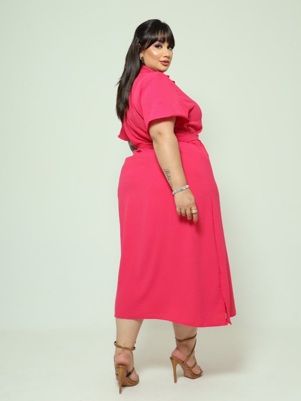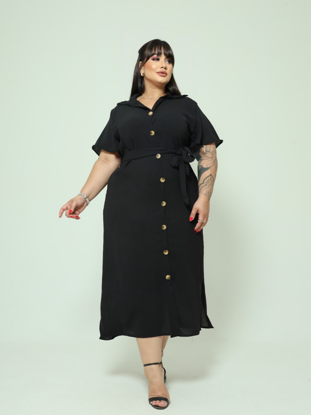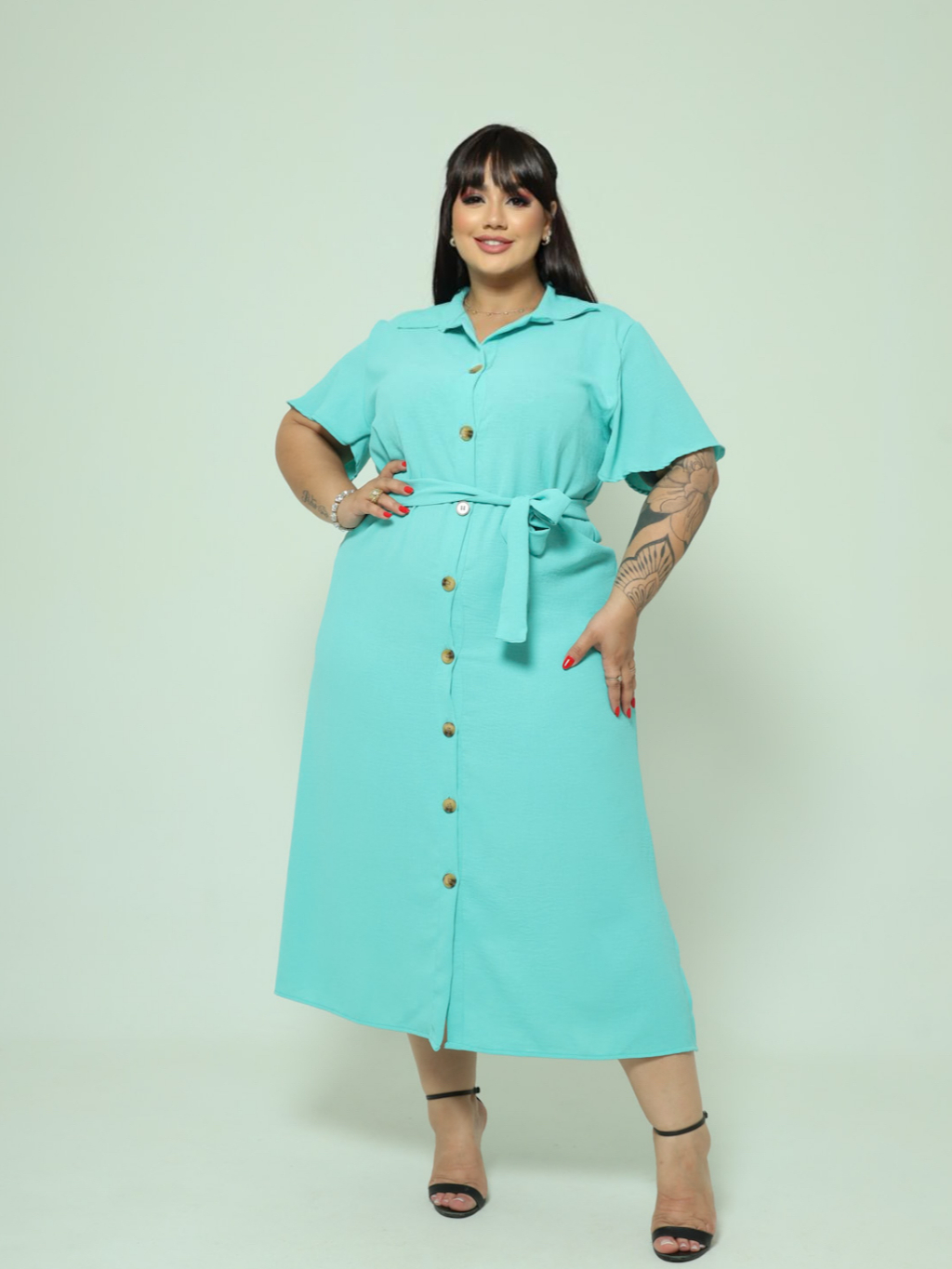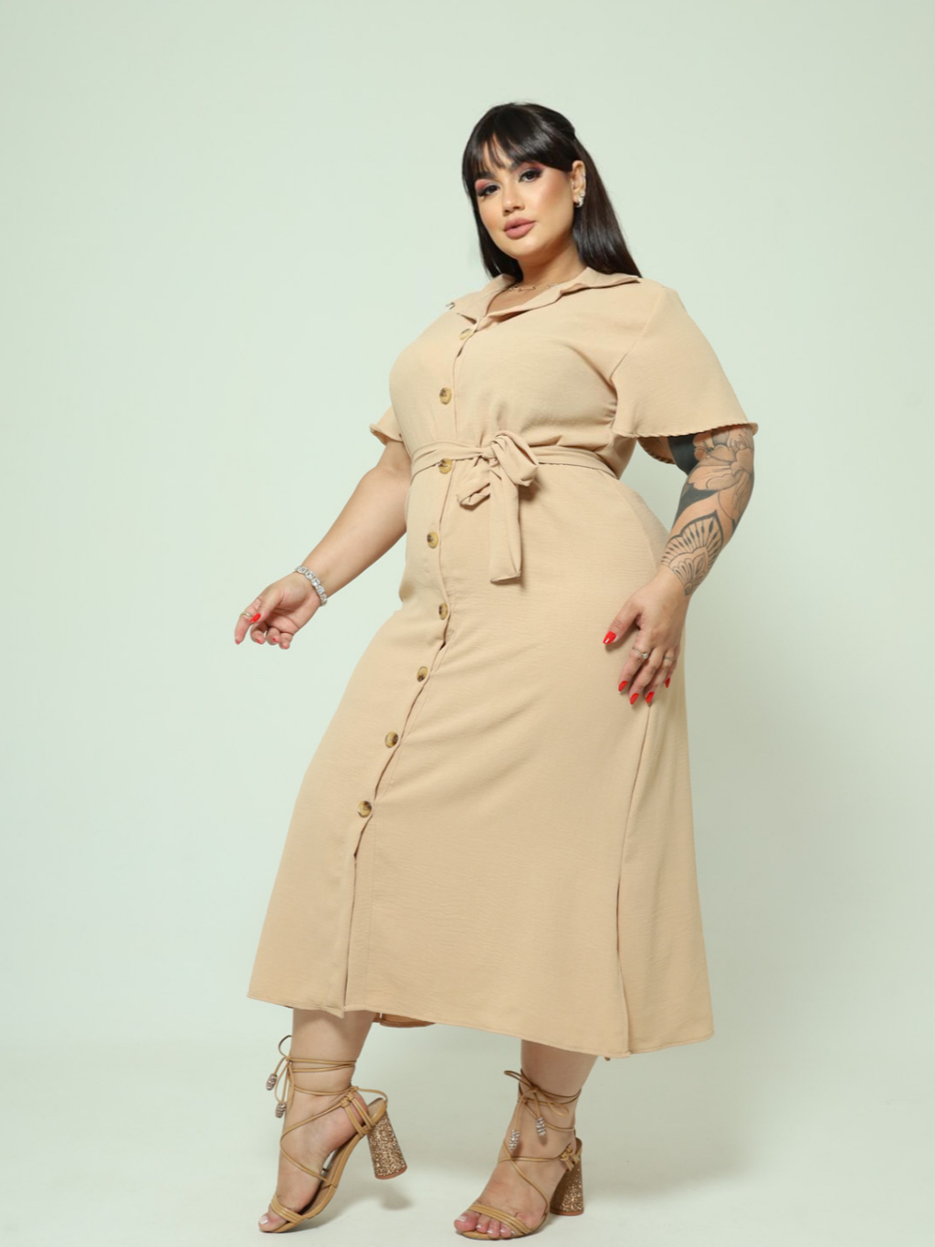 Vestido Chemise Midi Com Cinto