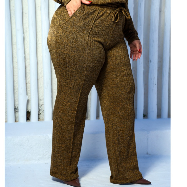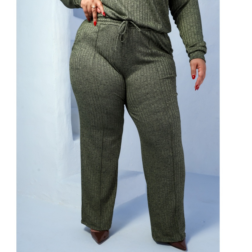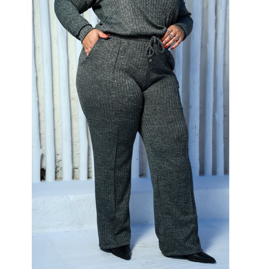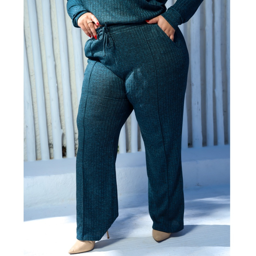 Calça Pantalona Plus Size Canelada