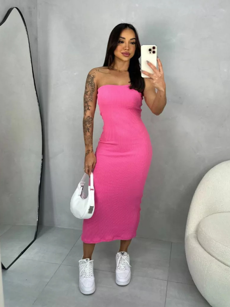 Vestido Midi Tomara que Caia Anarruga Até GG
