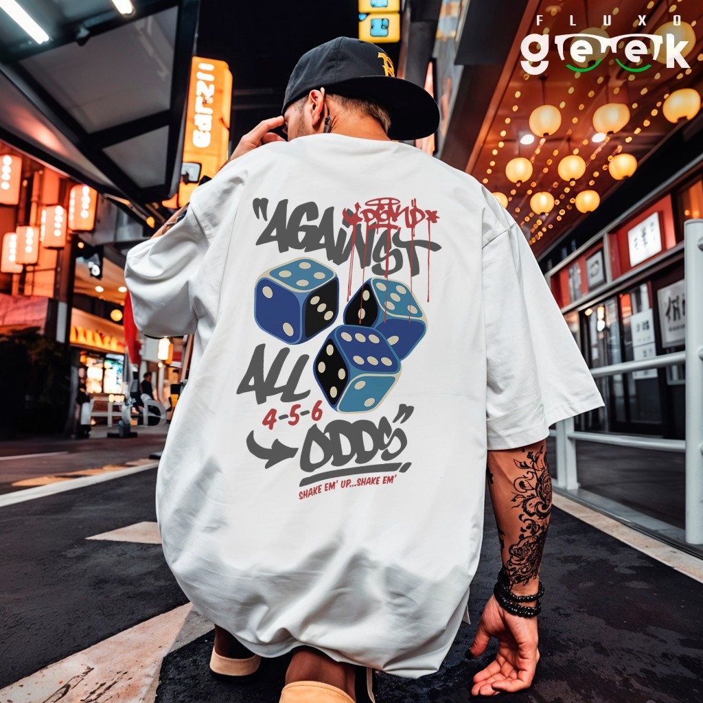 Camiseta Camisa Oversized Streetwear Dados Jogos Grafite Tipografia Urbana REF 3122 FLUXO GEEK