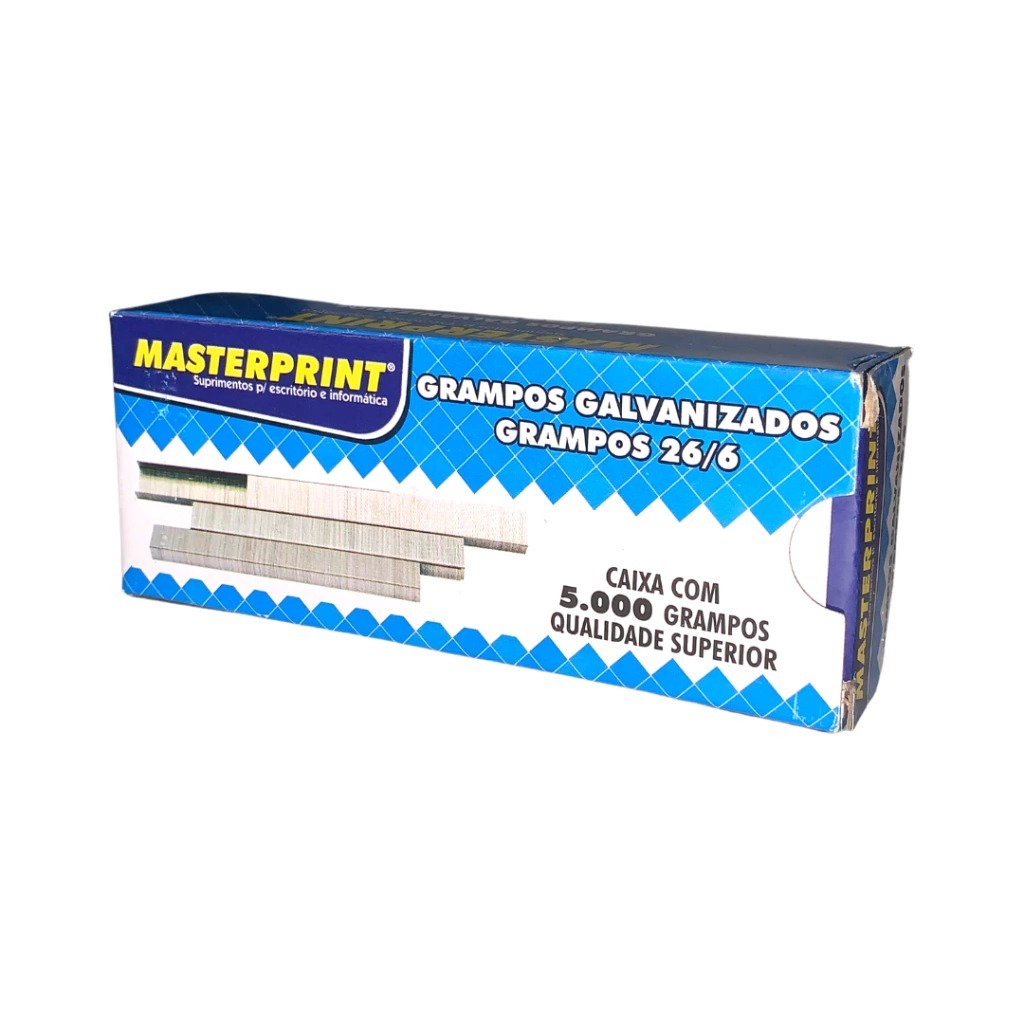 Kit Grampeador Metal + 5.000 Grampos 26/6 Galvanizados Escolar Escritório MASTERPRINT