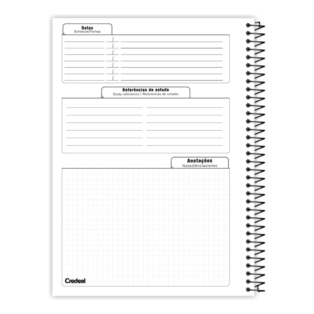 Caderno Universitário Capa Dura 10 Matérias Com 160 Folhas Preto Rosa Escolar Credeal