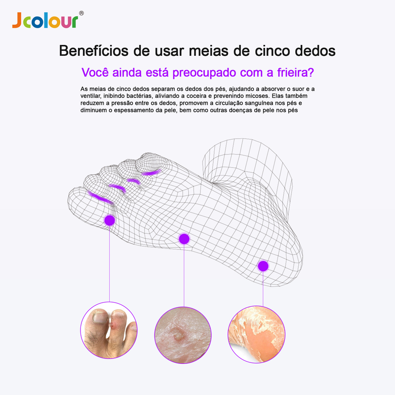 kit 3 Meias de Corrida de Algodão Antiderrapantes de Cinco Dedos para unisex Meias Antiderrapantes