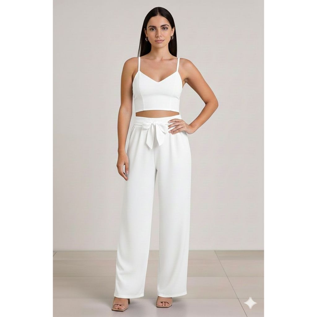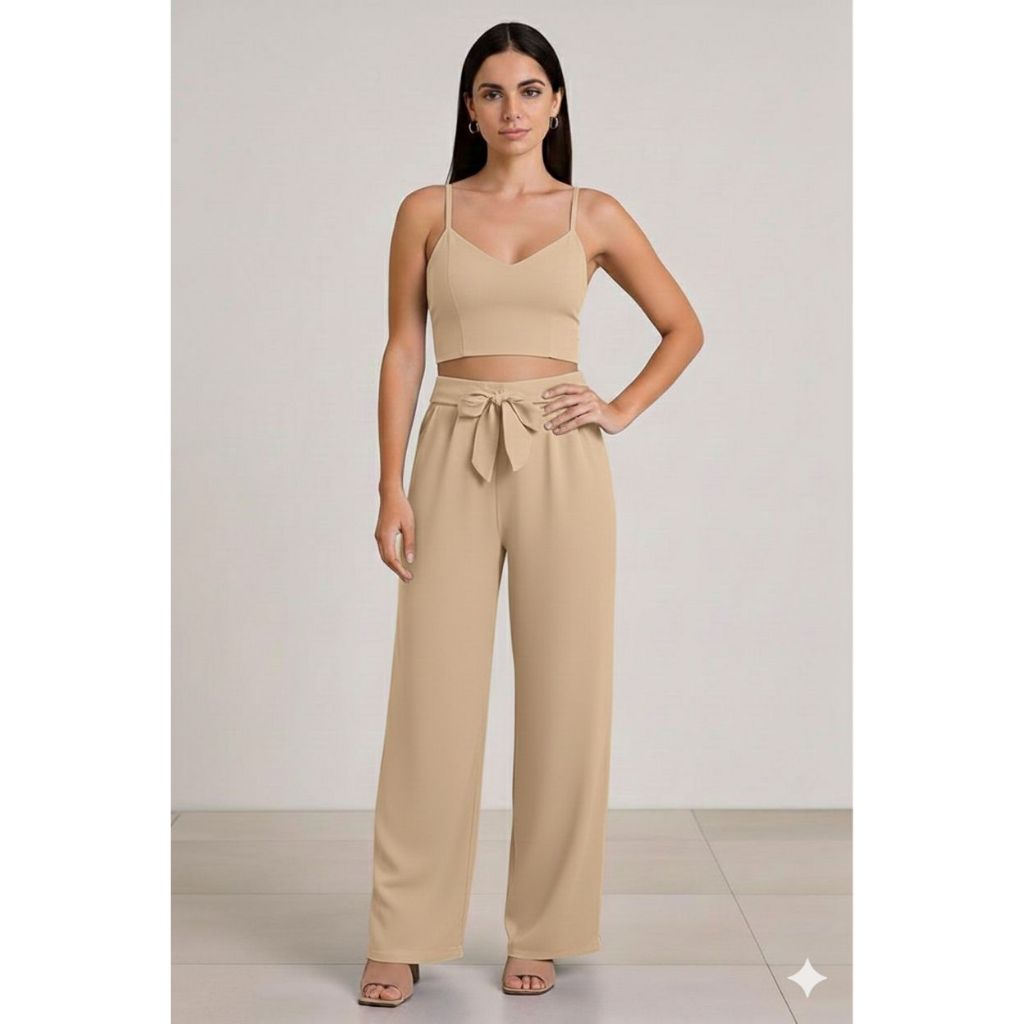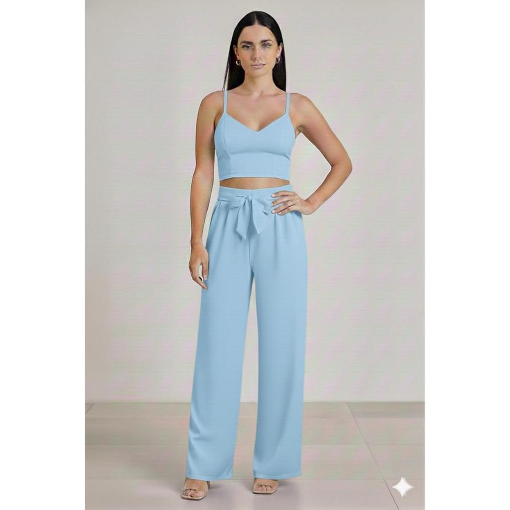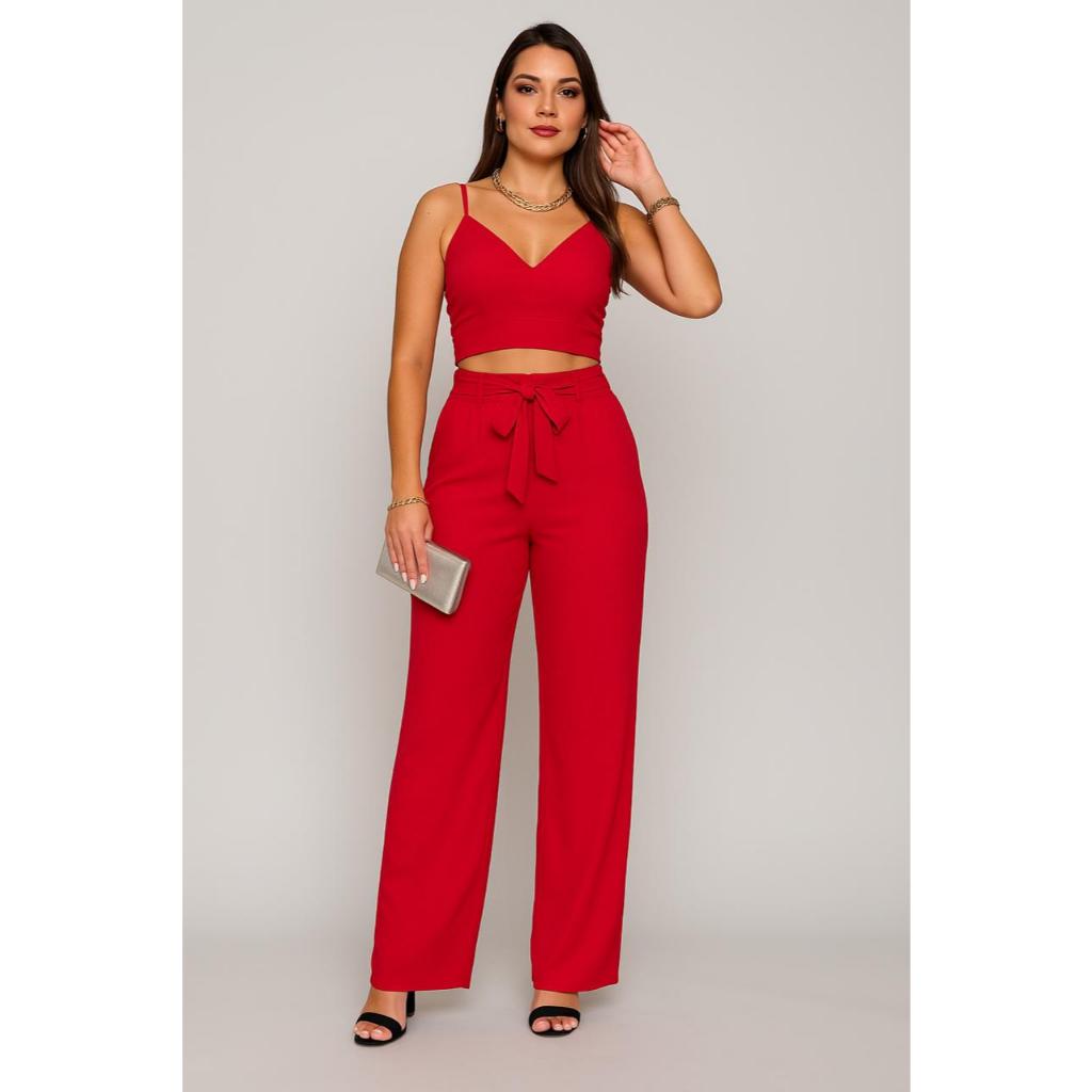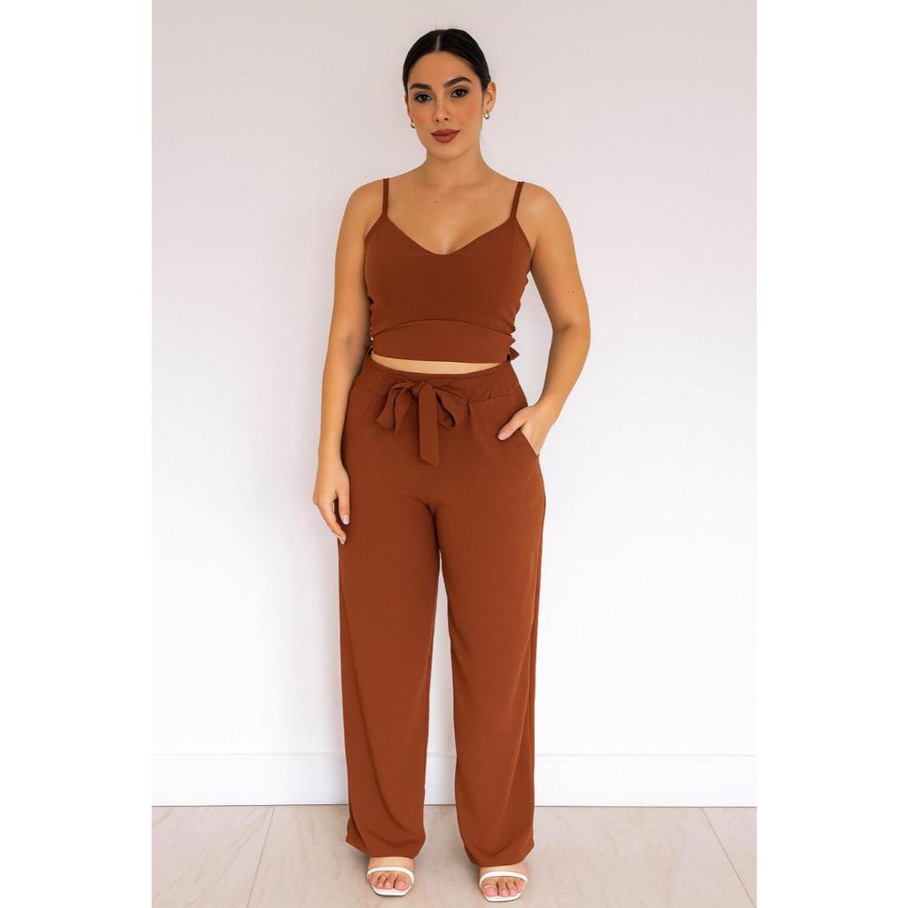 Conjunto Alfaiataria Feminino Calça Pantalona e Cropped Com Bojo Alça Regulagem cropped e calça cores outono inverno