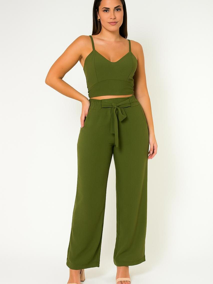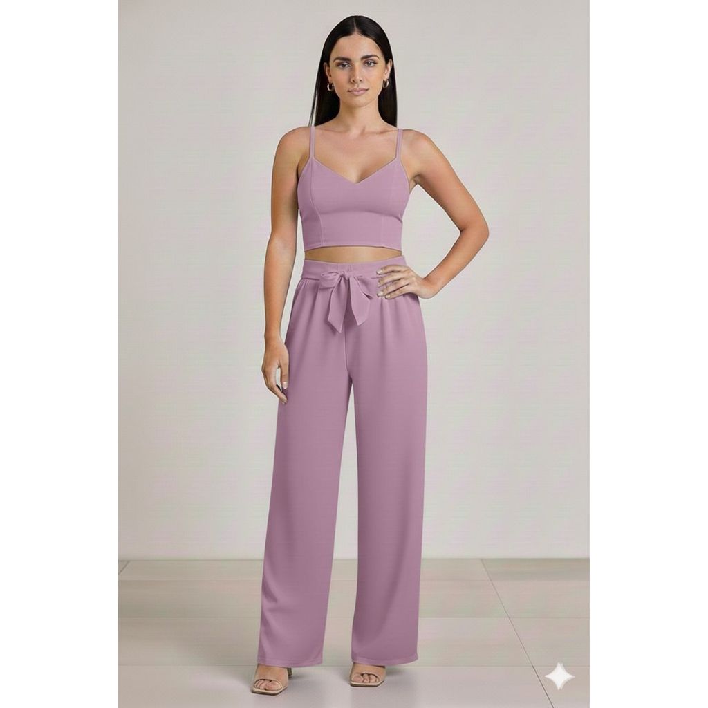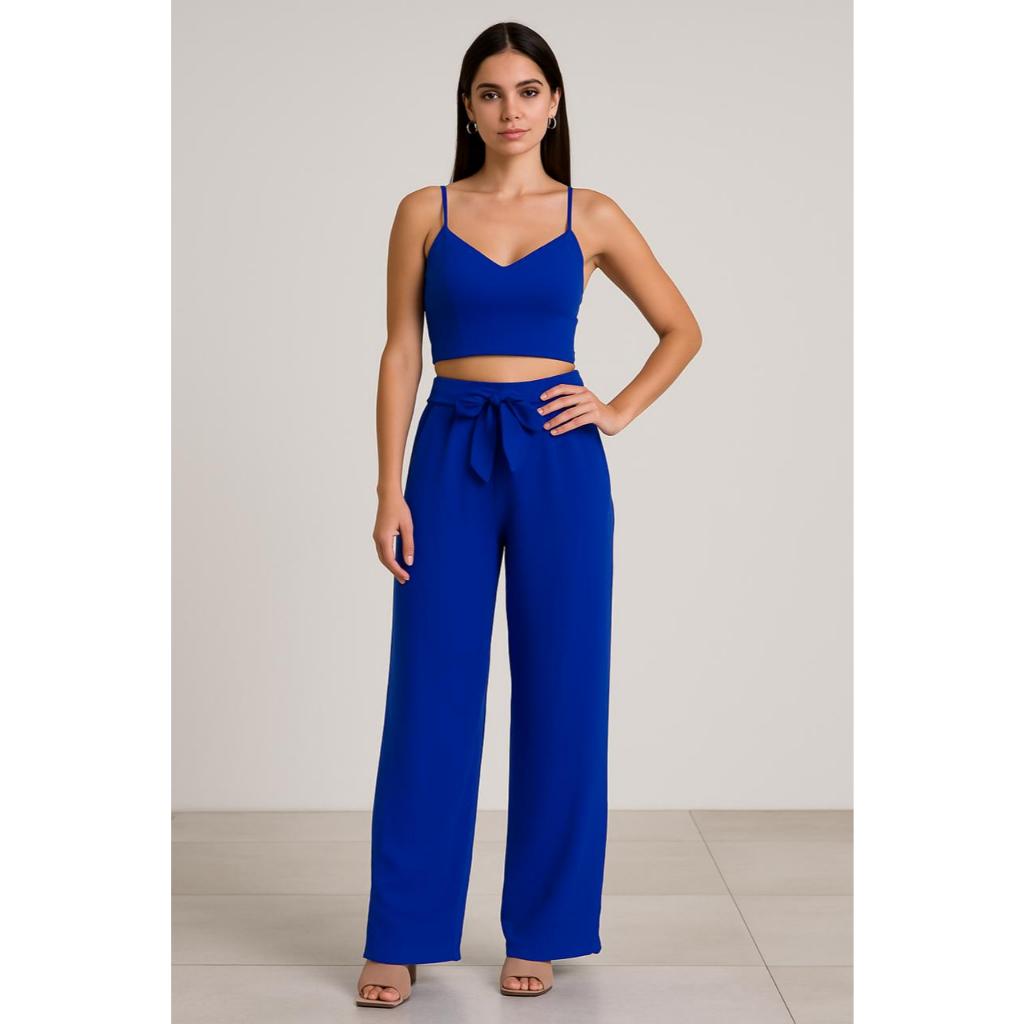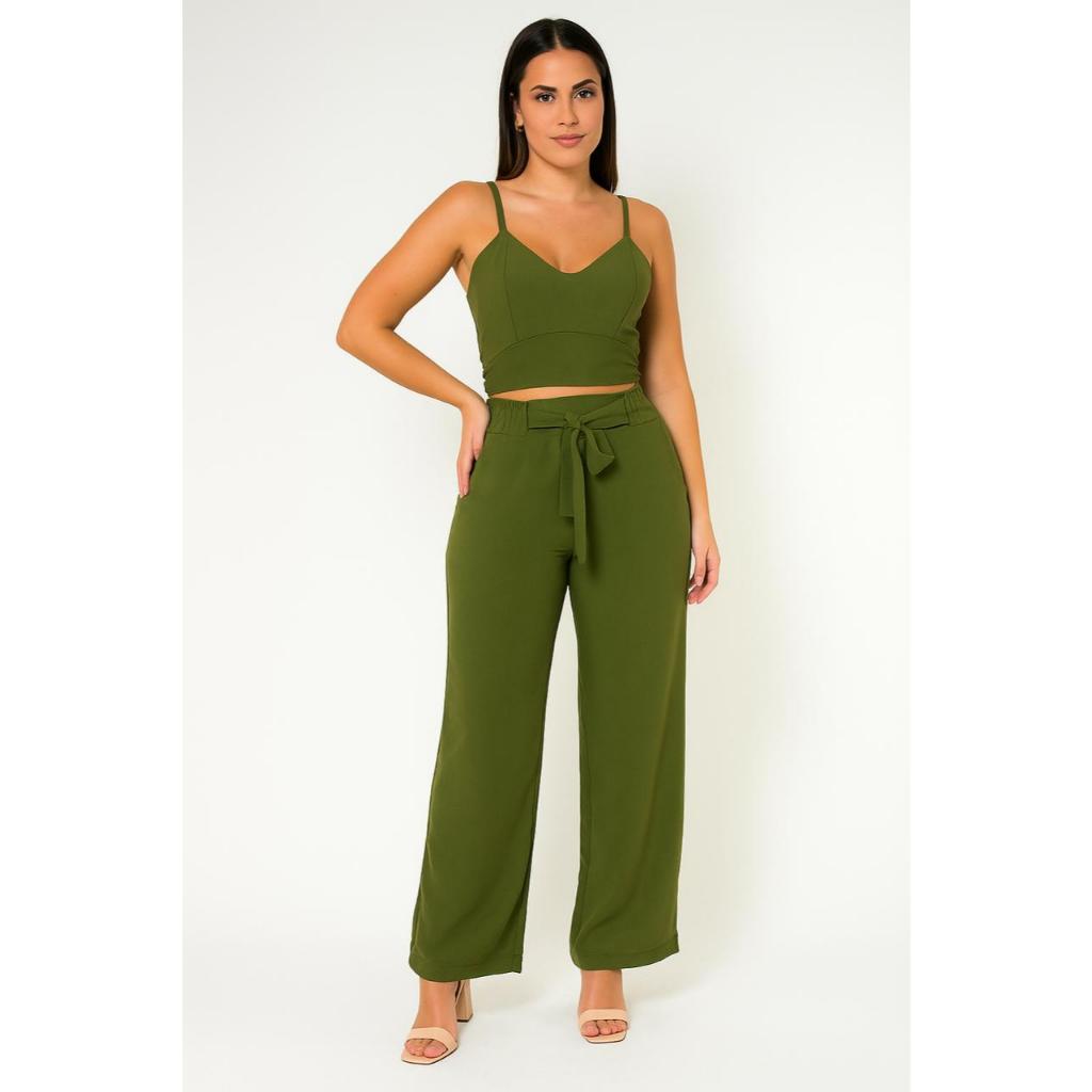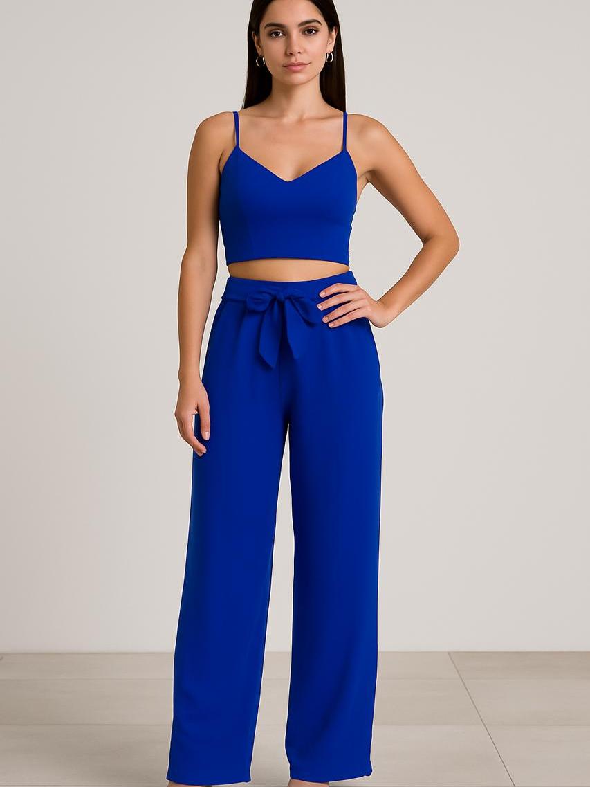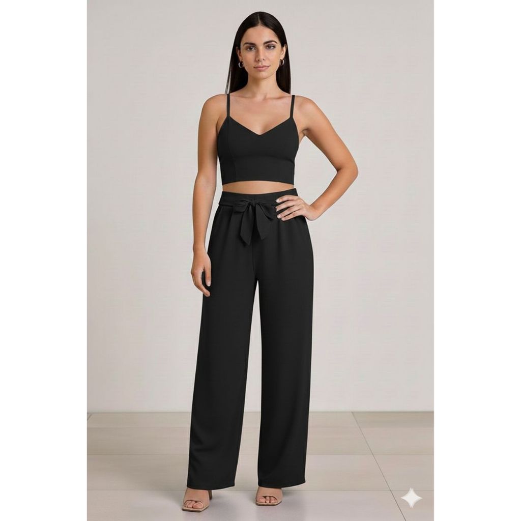 Conjunto Alfaiataria Feminino Calça Pantalona e Cropped Com Bojo Alça Regulagem cropped e calça cores outono inverno