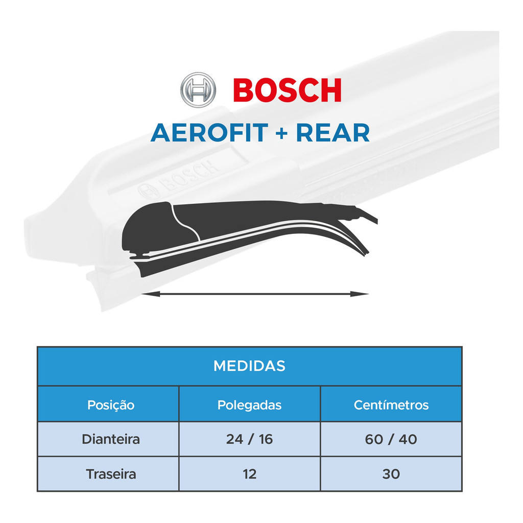 Kit 3 Palhetas Dianteiras Aerofit + Traseira REAR Original Bosch Chevrolet Captiva 2007 A 2017