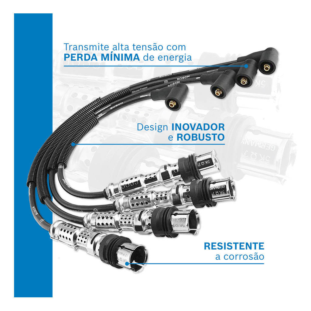 Kit Cabo E Vela de Ignição Original Bosch Chevrolet S10 2.4 MPFI 8V Flexpower 2007 A 2012