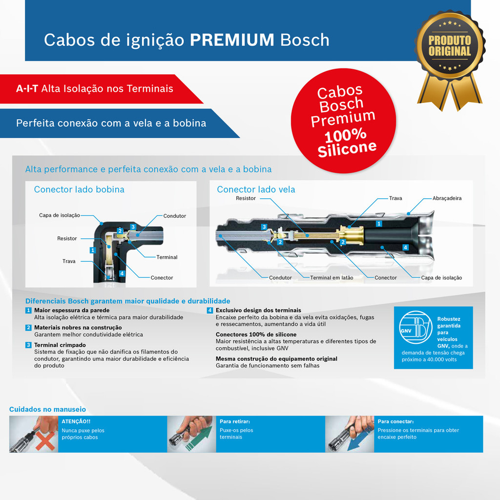 Kit Cabo E Vela de Ignição Original Bosch Fiat Strada Adventure Locker 1.8 MPI 8V Flex 2008 a 2010