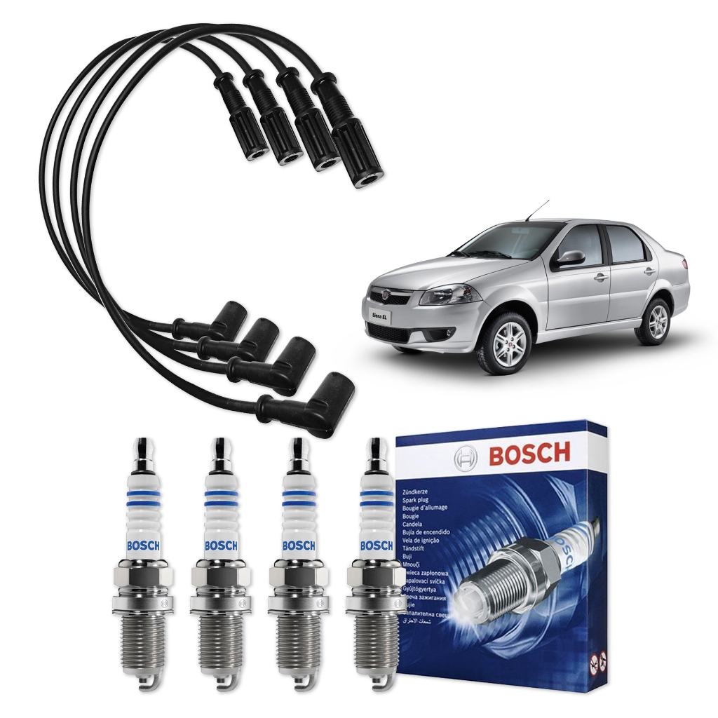 Kit Cabo E Vela de Ignição Original Bosch Palio Doblo Strada Uno Siena Idea Fiorino 1.0 1.3 e 1.4 8V