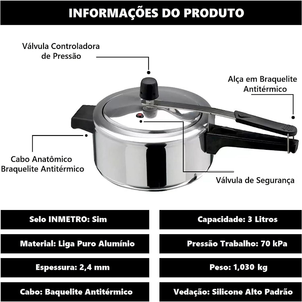 PANELA DE PRESSÃO PRESAO POLIDA 3 LITROS COM SELO INMETRO + ENVIO RÁPIDO