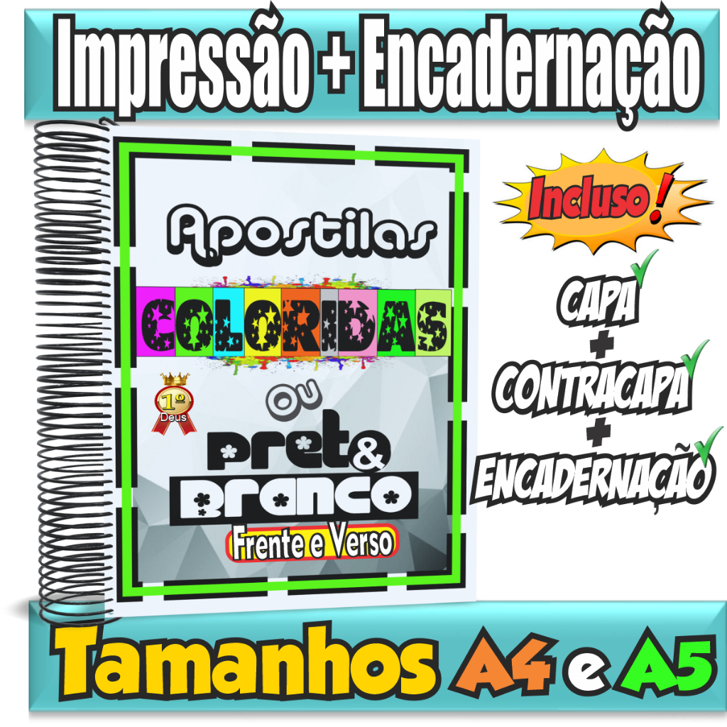 Impressão de 2 Apostilas total 1000 páginas em Frente e Verso Color ou Preto e Branco e Encadernadas