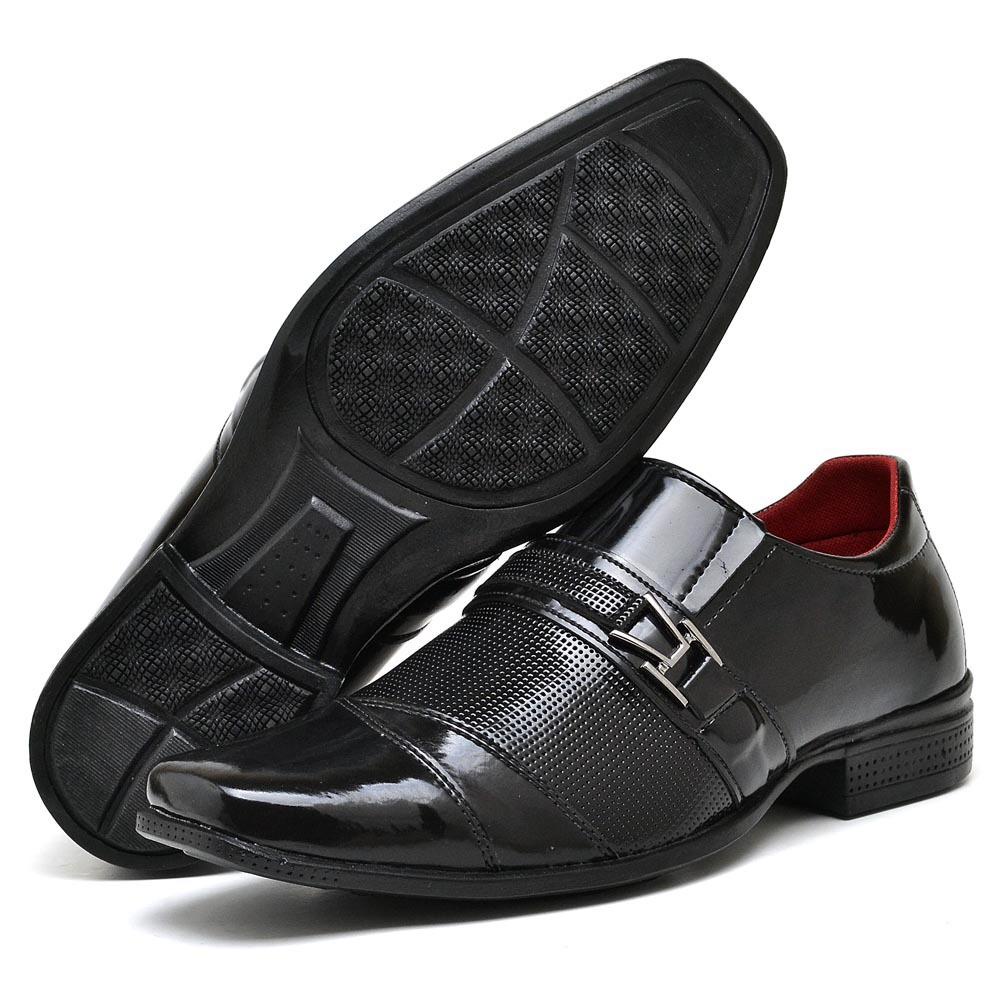 sapato social masculino preto verniz de fivela elegante moderno elegante