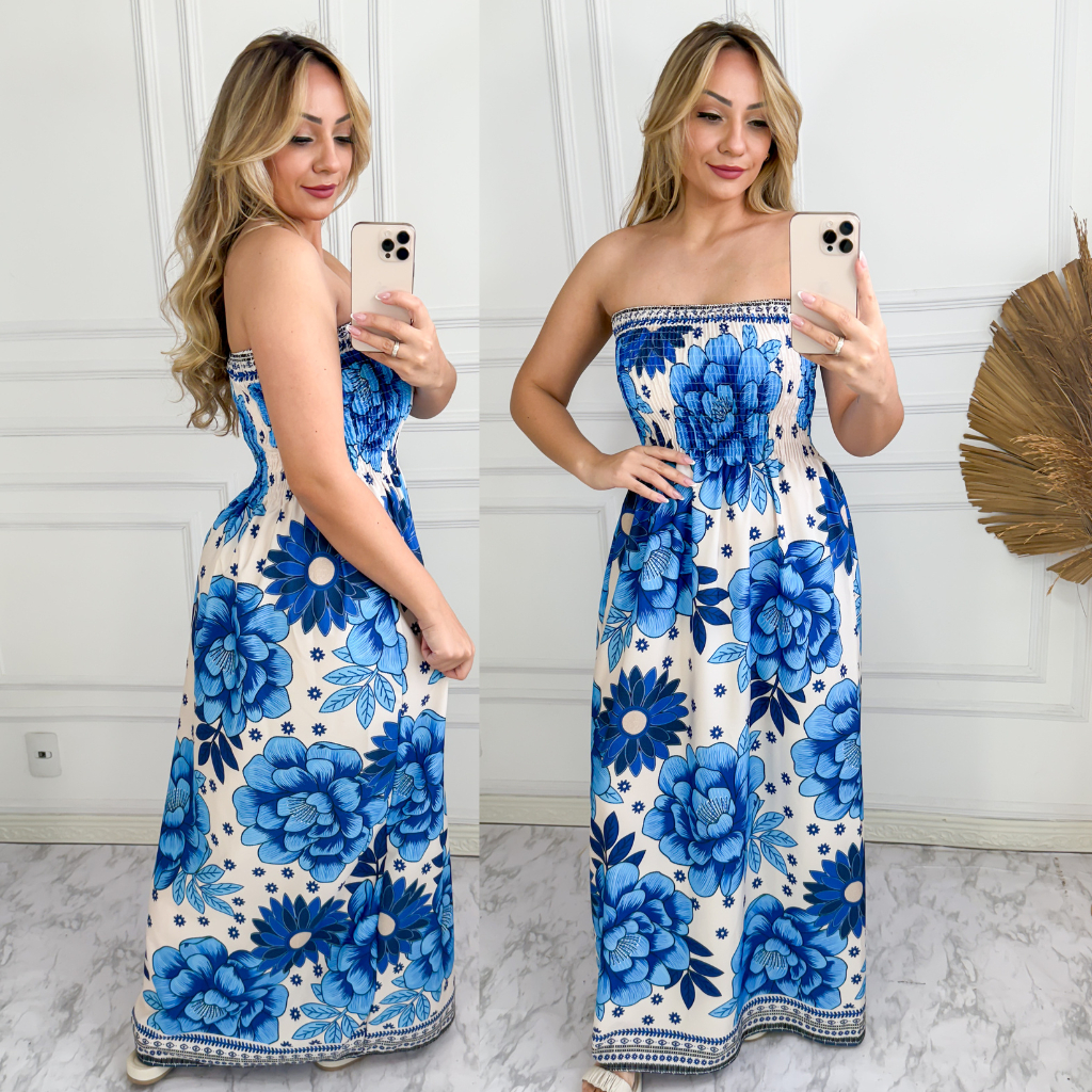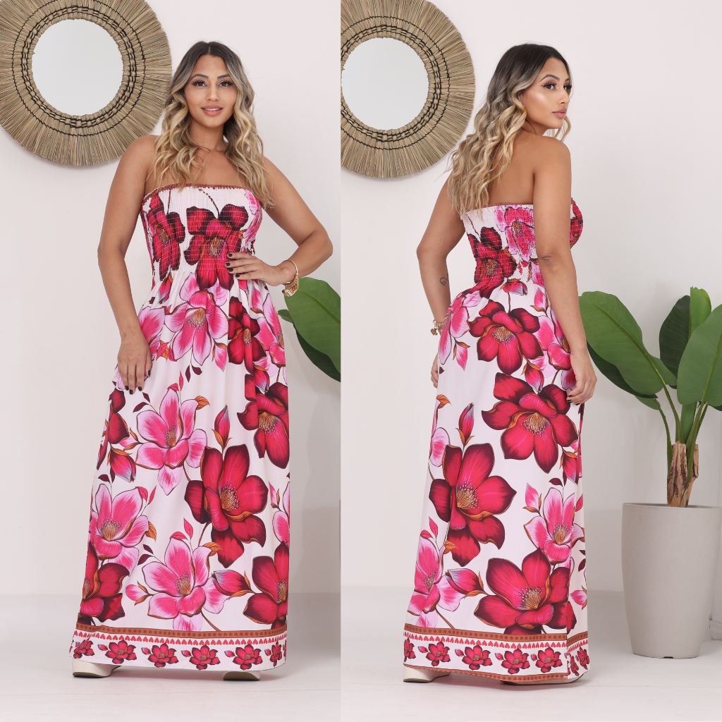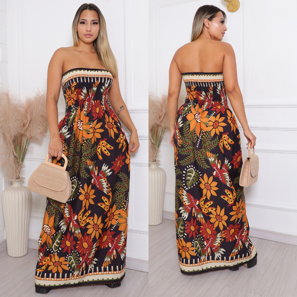 vestido feminino longo CON LASTEX tomara que caia.