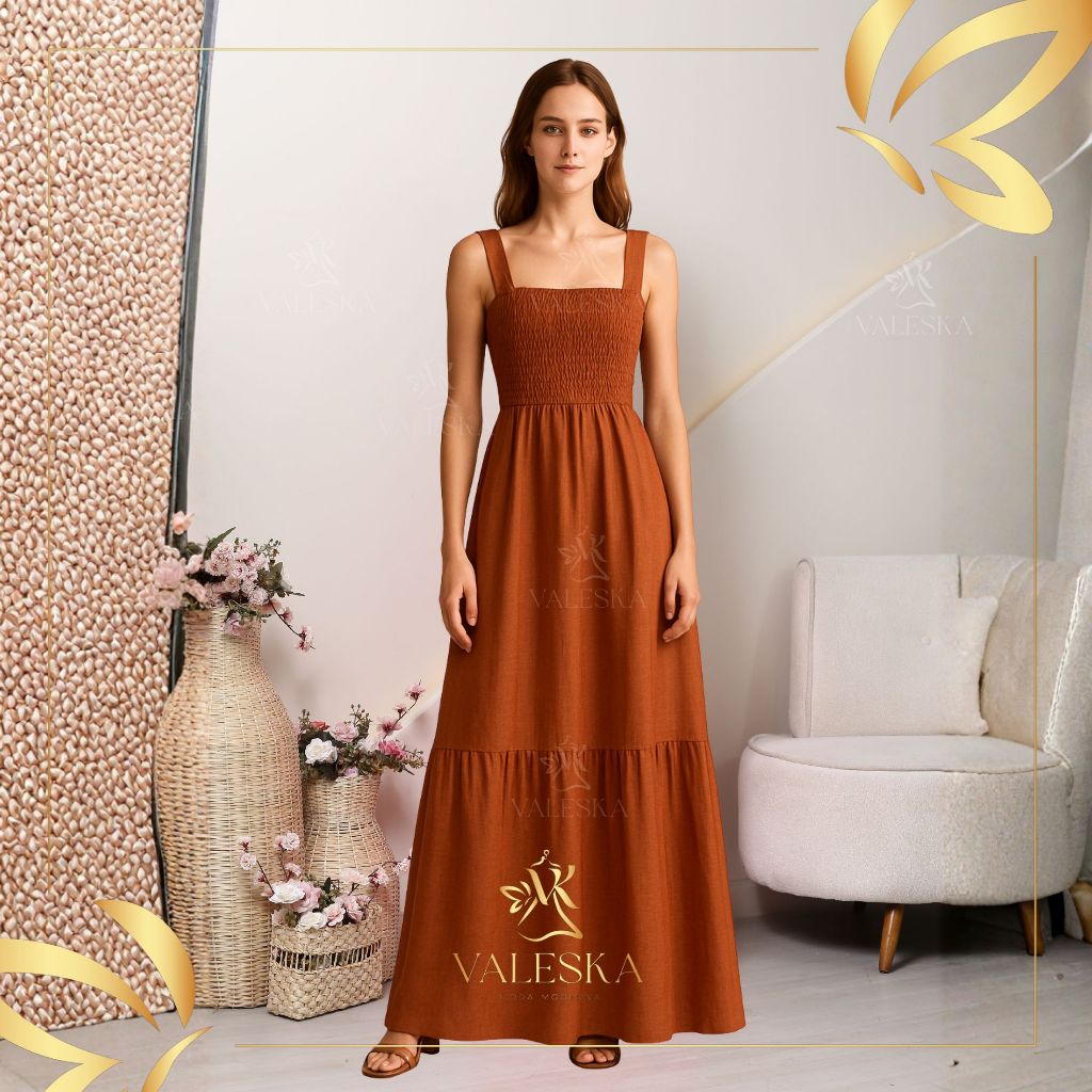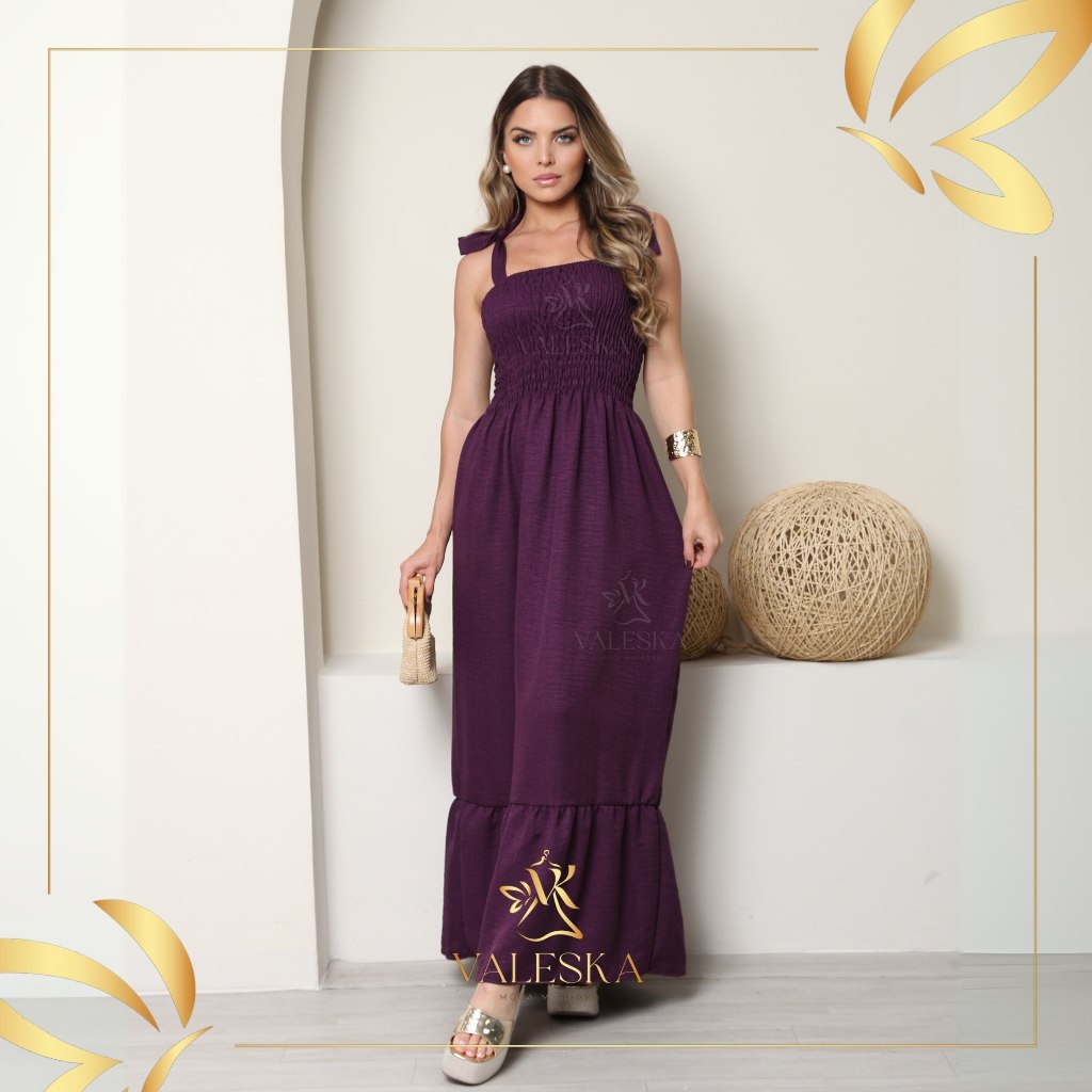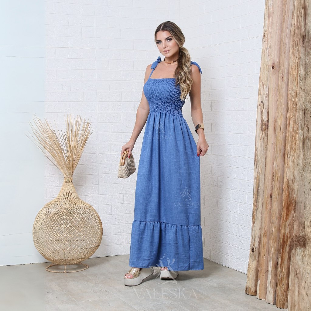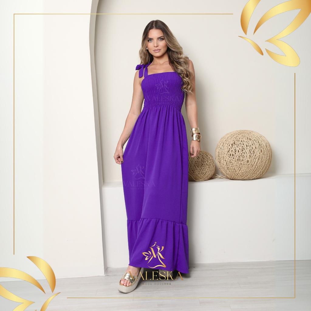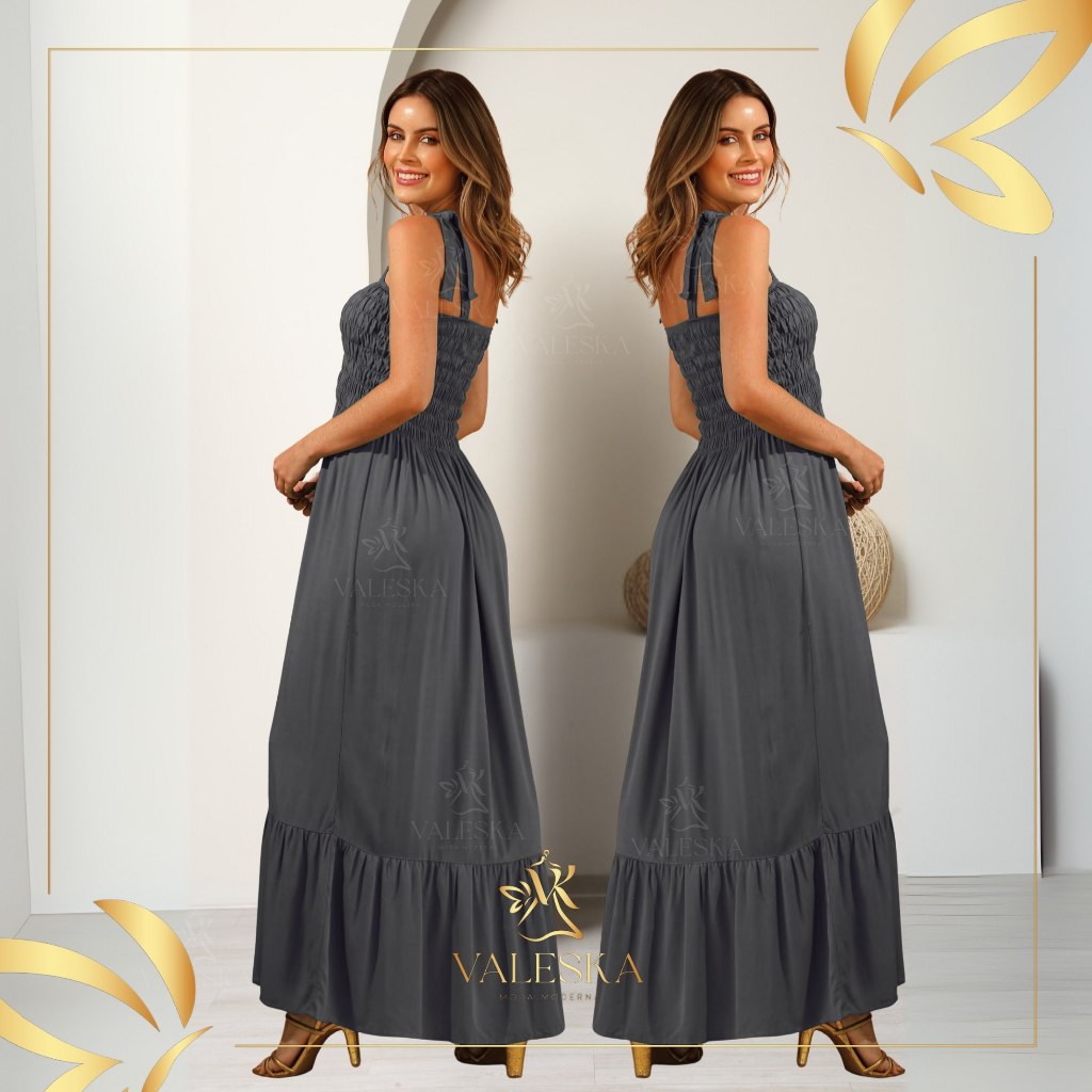 vestido feminino longo de alçinhas ajustaveis e lastex elegante TECIDO DUNA PREMIUM ENTREGA IMEDIATA