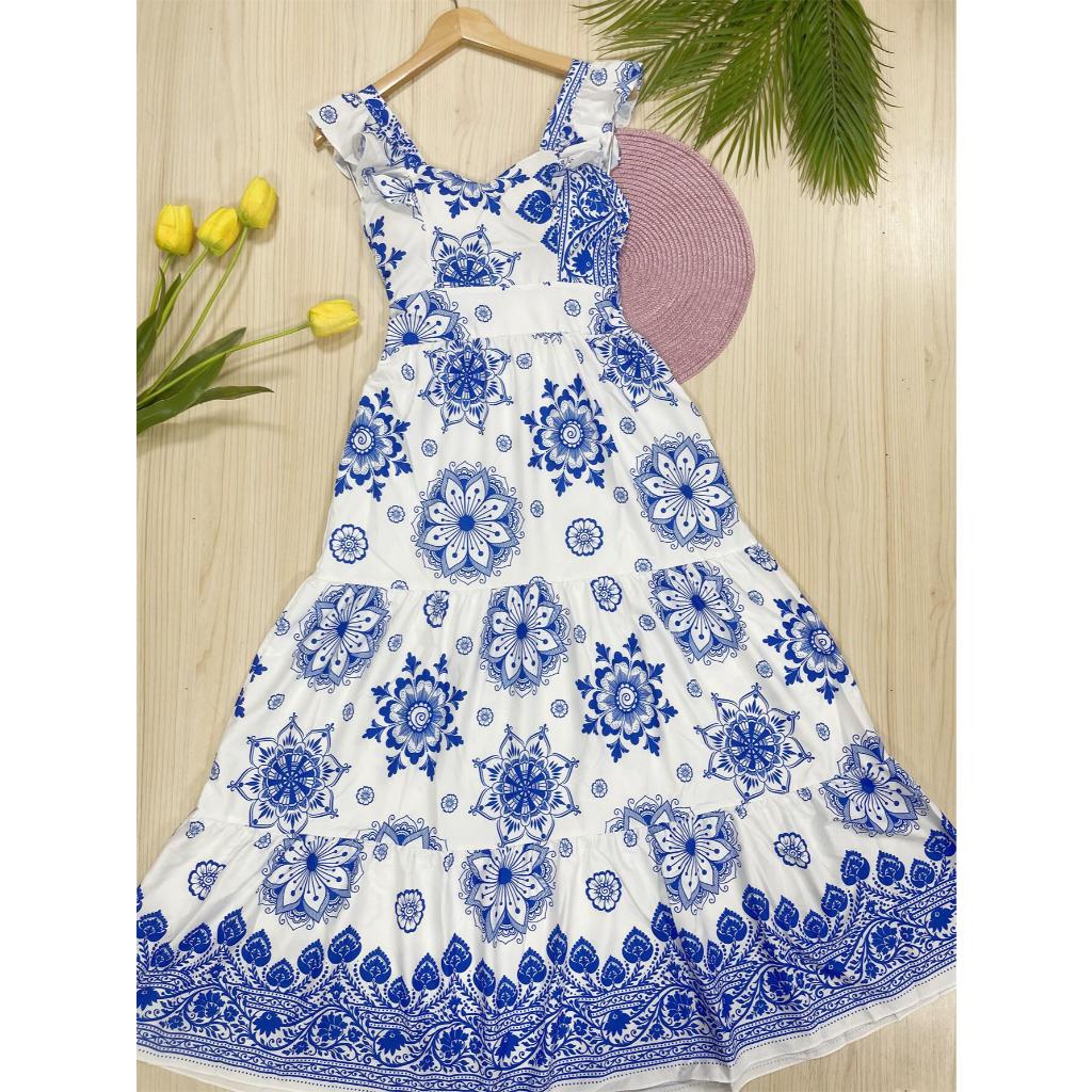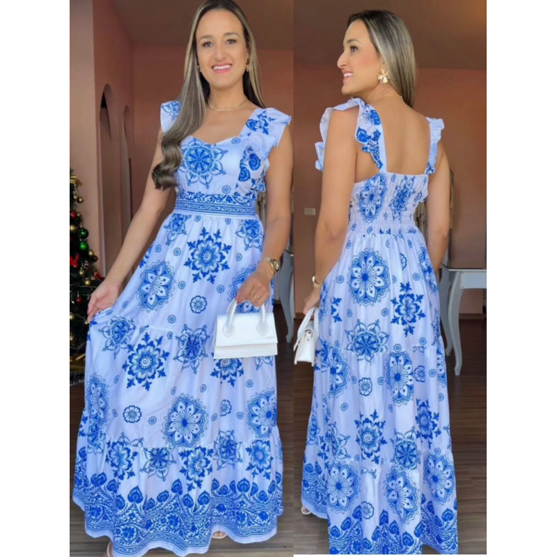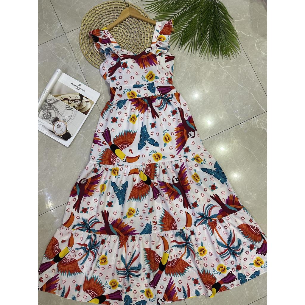 vestido longo ESTAMPA com forro tecido CREPINHO bonito fashion