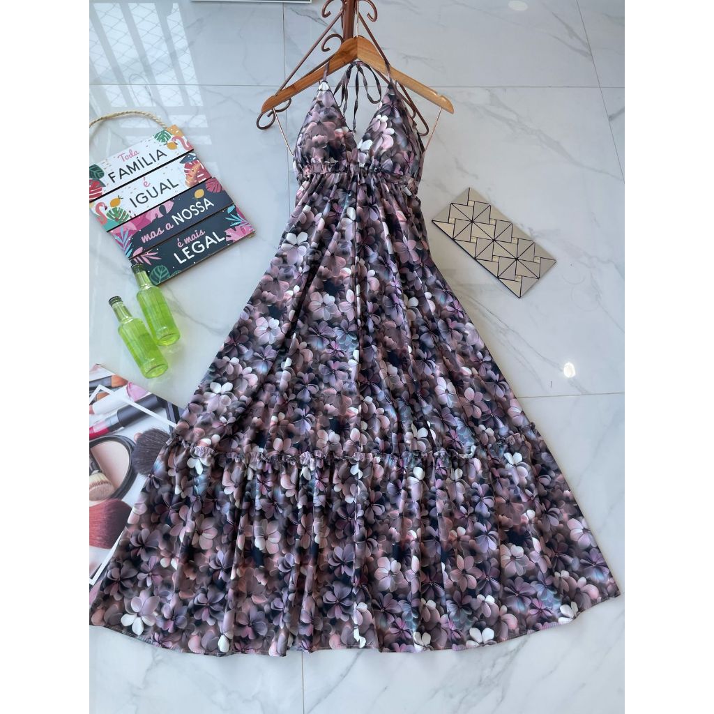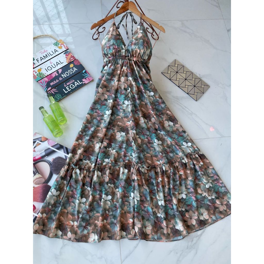 vestido longo com bojo alca fina costa nua tecido crepp modelo novo v0117