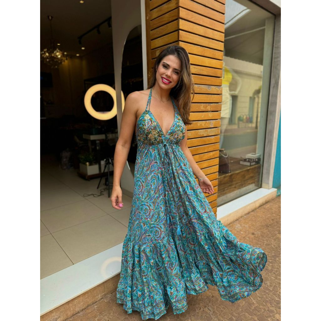 vestido longo costa nua