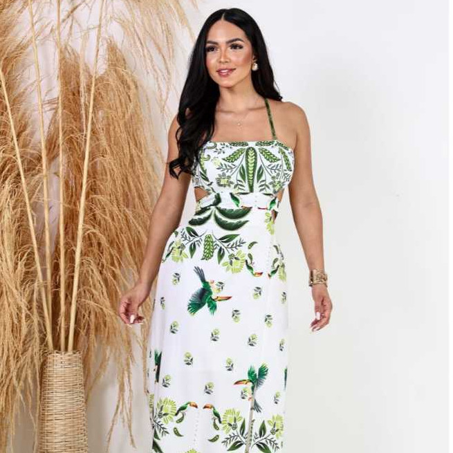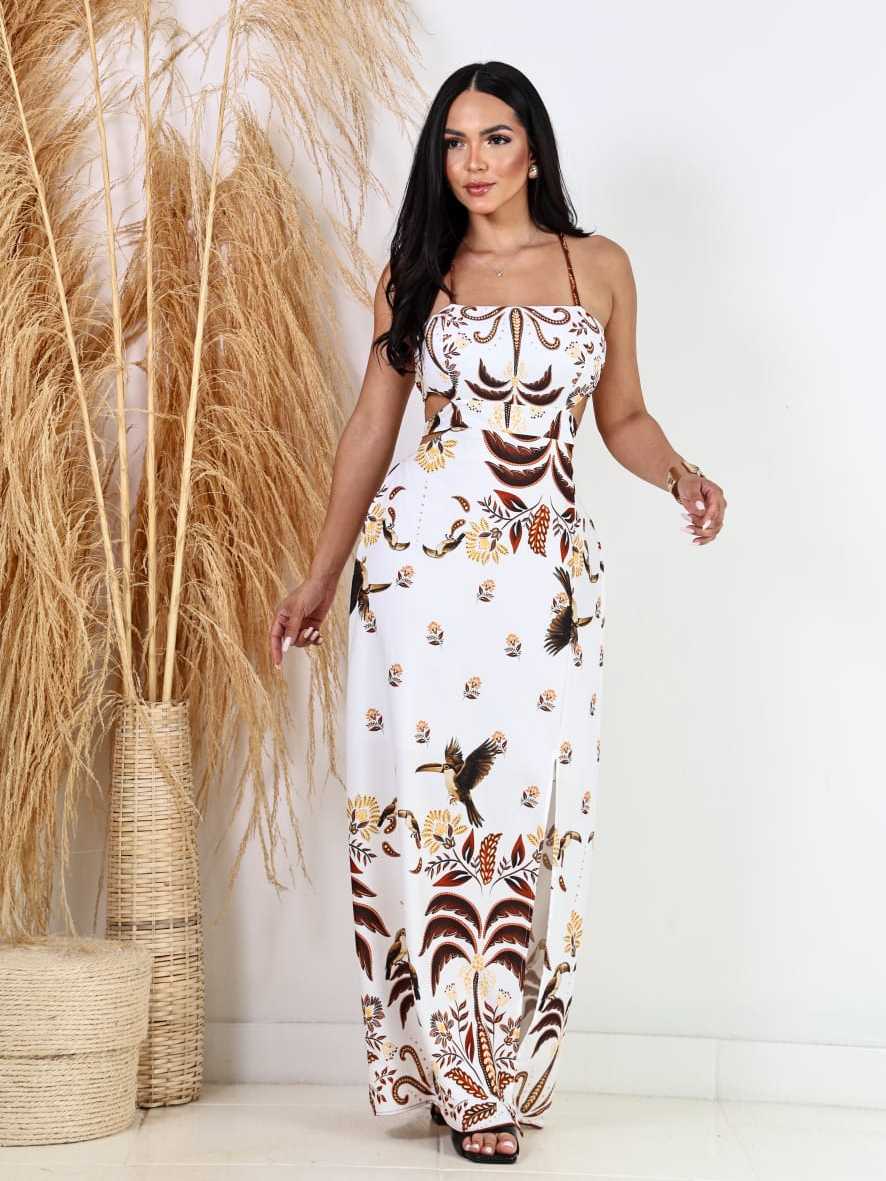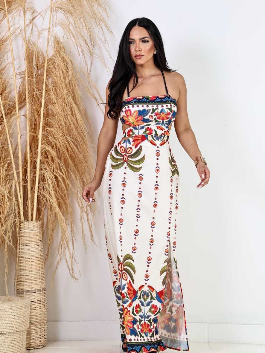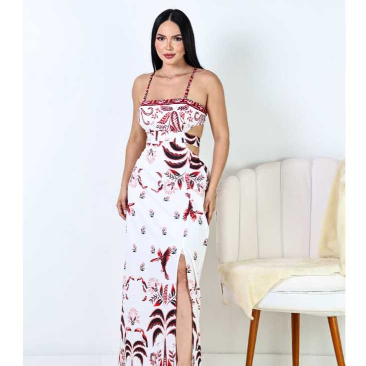 vestido longo feminino estampado casual