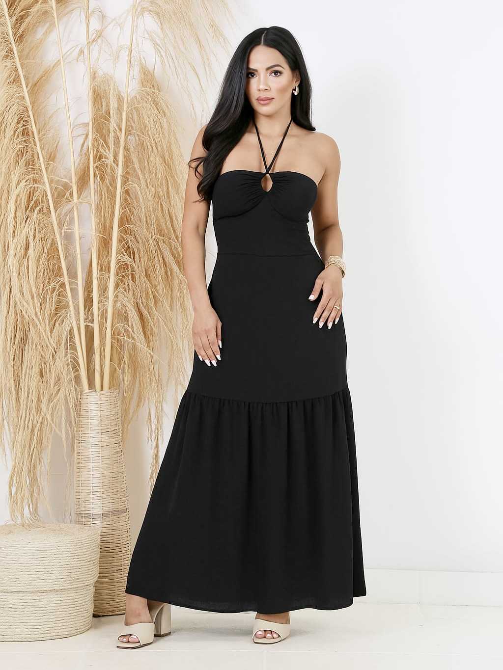 vestido longo feminino liso com 3 formas de usar a melhor preço ..